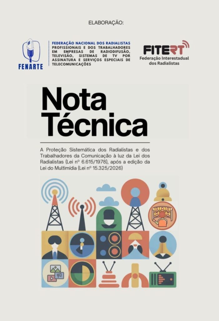 Leia no link acima, a Nota Técnica sobre a Proteção Sistemática dos Radialistas e dos Trabalhadores da Comunicação à luz da Lei dos Radialistas (Lei nº 6.615/1978), após a edição da Lei do Multimídia (Lei nº 15.325/2026).